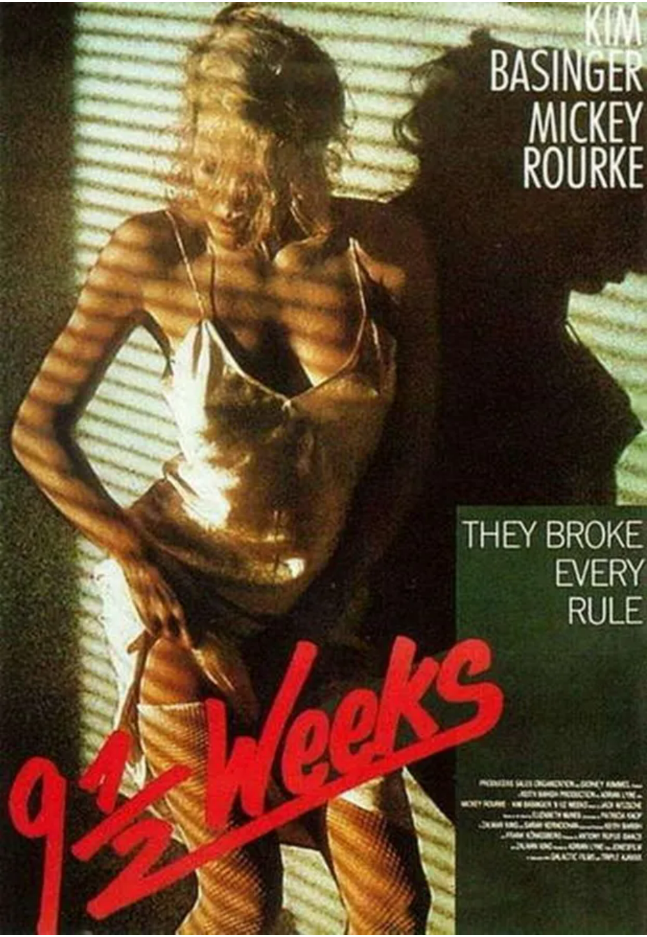 에이드리언 라인(Adrian Lyne)이 감독하고 1986년에 개봉한 '나인 하프 위크(Nine 1/2 Weeks)'는 욕망, 통제, 그리고 쾌락과 고통 사이의 흐릿한 선들의 복잡함을 탐구하는 이질적인 드라마입니다. 이 영화는 미술관에서 큐레이터로 일하고 있는 엘리자베스 맥그로 역으로 킴 베이싱어(Kim Basinger)가 출연하고, 신비롭고 수수께끼 같은 월스트리트의 주식 중개인 존 그레이 역으로 미키 루크(Mickey Rourke)가 출연합니다. 엘리자베스와 존은 거리에서 술집에서 계속 마주칩니다. 처음 술집에서 존을 처음 보게 된 엘리자베스는 그에게서 눈을 떼지 못합니다. 그 시절 정말 최고의 아름다움을 보여주는 미키 루크(Mickey Rourke)의 모습으로 연기한 주인공 존 역은 엘리자베스가 눈을 떼지 못한 이유를 충분히 설명해 주고도 남습니다. 엘리자베스는 원래부터 양복을 입고 바쁘게 살아가는 월스트리트의 남자에 대한 동경이 있었고, 거기다 잘생기기까지 한 존을 보자 한눈에 반한 것입니다. 이 두 사람은 다시 한번 거리에서 마주칩니다. 서로 가벼운 농담을 하면서 아는 체를 하다가 존은 엘리자베스에게 저녁 식사를 제안합니다. 같이 식사를 하면서 둘은 더 가까워지고, 존은 친구의 별장으로 엘리자베스를 데리고 갑니다. 즐거운 시간을 보내던 존은 더 가까이 가고자 하지만 엘리자베스는 부담감을 느끼고 집으로 돌아옵니다. 다음 날 엘리자베스의 직장으로 꽃이 배달되고, 이때부터 존과 엘리자베스는 만남을 이어가게 됩니다. 속을 알 수 없는 신비로운 매력의 존에게 빠진 엘리자베스는 존의 여러 가지 특이하고 거침없는 요구들을 들어주며 그에게 서서히 빠져듭니다. 그녀에게는 이혼한 전남편이 있는데 그녀와의 재결합을 원하며 지속적으로 그녀와의 만남을 요구하지만 이미 존에게 빠진 그녀는 그는 안중에도 없습니다. 오히려 직장동료를 전남편에게 소개해주고 이 두 사람은 곧 깊은 관계가 됩니다. 존과의 만남이 지속될수록 보통사람과 다른 방식의 자극과 경험을 해주는 그에게 빠져들었지만, 한편으로는 너무도 다른 방식의 연예로 인해 그녀는 점점 지쳐갔습니다. 자신에 대해서 전혀 얘기해주지 않는 것과, 보통의 연예와는 다른 방식을 끊임없이 요구하는 그에게 그녀는 화가 났고, 싸우다 다시 화해하는 것을 반복하는 것 또한 그녀를 지치게 만들었습니다. 전남편과 직장동료의 평범한 연애가 이제는 부러워졌고, 그녀는 그에게서는 그런 연애를 기대할 수 없다는 사실을 자각하게 됩니다. 뒤늦게 존도 엘리자베스를 진정으로 사랑한다고 깨닫게 되지만 이미 관계를 회복하기엔 너무 시간이 흐른 뒤였습니다. 결국 존은 그녀를 잡지만 그녀는 떠납니다.