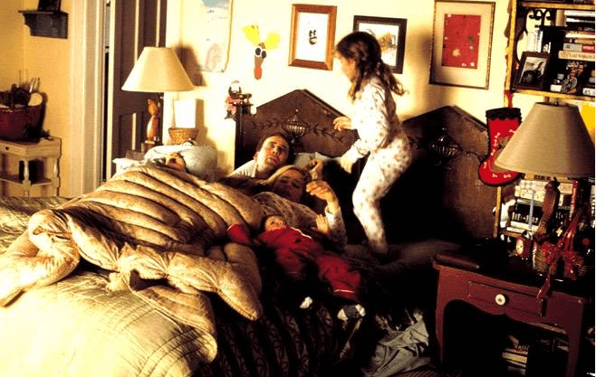 옆에는 과거에 헤어졌던 여자친구 케이트가 아내로 누워 있었고, 두 사람 사이에는 어린 딸과 갓난 아들이 있었습니다.